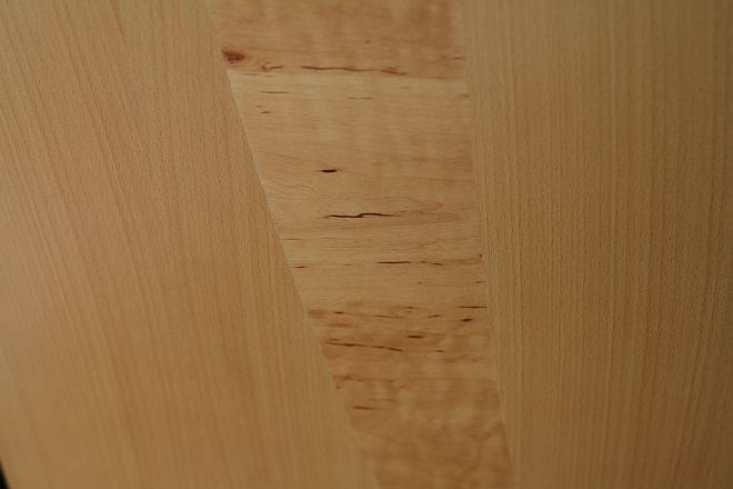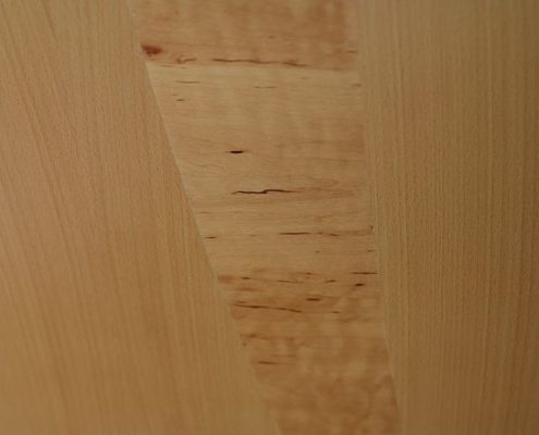 Az ajtólap rétegragasztott fa, kialakításakor egyedülálló technológiát alkalmazunk. A tokot 25 mm-es MDF-ből gyártjuk, bükkfurnérral borítjuk. Az ajtólapra kerülő bükkfurnér függőleges szálirányú, az éger viszont vízszintes. A középső éger intarzia száliránya variálható.