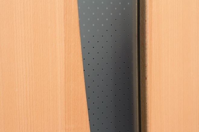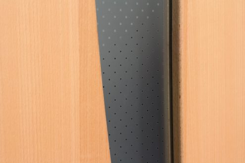 A rétegragasztott fából speciális módszerrel alakítjuk ki az ajtólapot. A tok alapja 25 mm-es MDF, amelyre bükkfurnérból készítünk borítást. Az ajtólapon a furnér száliránya függőleges. Ehhez az ajtóhoz fazettázott élkiképzést ajánlunk, a biztonsági üveg helyére kereszt- vagy hosszúszálú fabetét vagy akár fémdekorbetét is helyezhető. Ez esetben a típus tömör ajtó alternatíváját kapjuk.