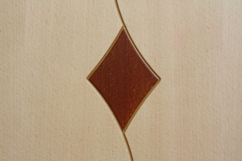 Az ajtólap különleges módon készült, rétegragasztott fa, a tok bükkfurnérral borított, 25 mm-es MDF. Az ajtólapra a bükkfurnér függőleges száliránnyal került fel. A felületet egyedi gravírmintázat díszíti, amely a felső furnérréteg átmarásával jött létre. A világos és a sötét réteg közötti eltérés erős kontrasztot ad, ami fokozható a minta közepére helyezett furnérral vagy a minta belső részének sötétre pácolásával. A kisméretű fotón ez utóbbi látható, világos bükk ajtólapon. Az élek kiképzését Ön szabhatja meg a tokon és az ajtólapon is.