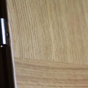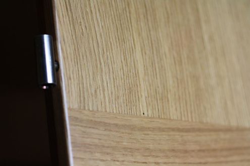 A rétegragasztott fából gyártott ajtó készítése során különleges módszert alkalmazunk. A tokot 25 mm-es MDF-ből gyártjuk le, amire aztán tölgy furnérborítást teszünk. Az ajtólap telelapos, az egyedi megjelenést a tölgyfa szálirányának változtatása biztosítja.